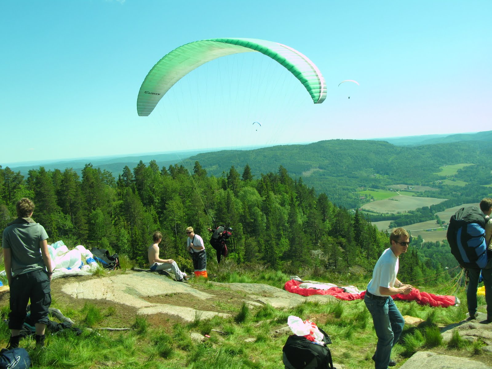 Litt skiftene også på starten her. Tydet på termisk aktivitet. Hovedvinden var temmelig nær nord, men jeg la ut tandemen og ventet en god stund før jeg valgte å starte. Lasse Tunstrøm fra Hof var på besøk og la ut rett bak meg.