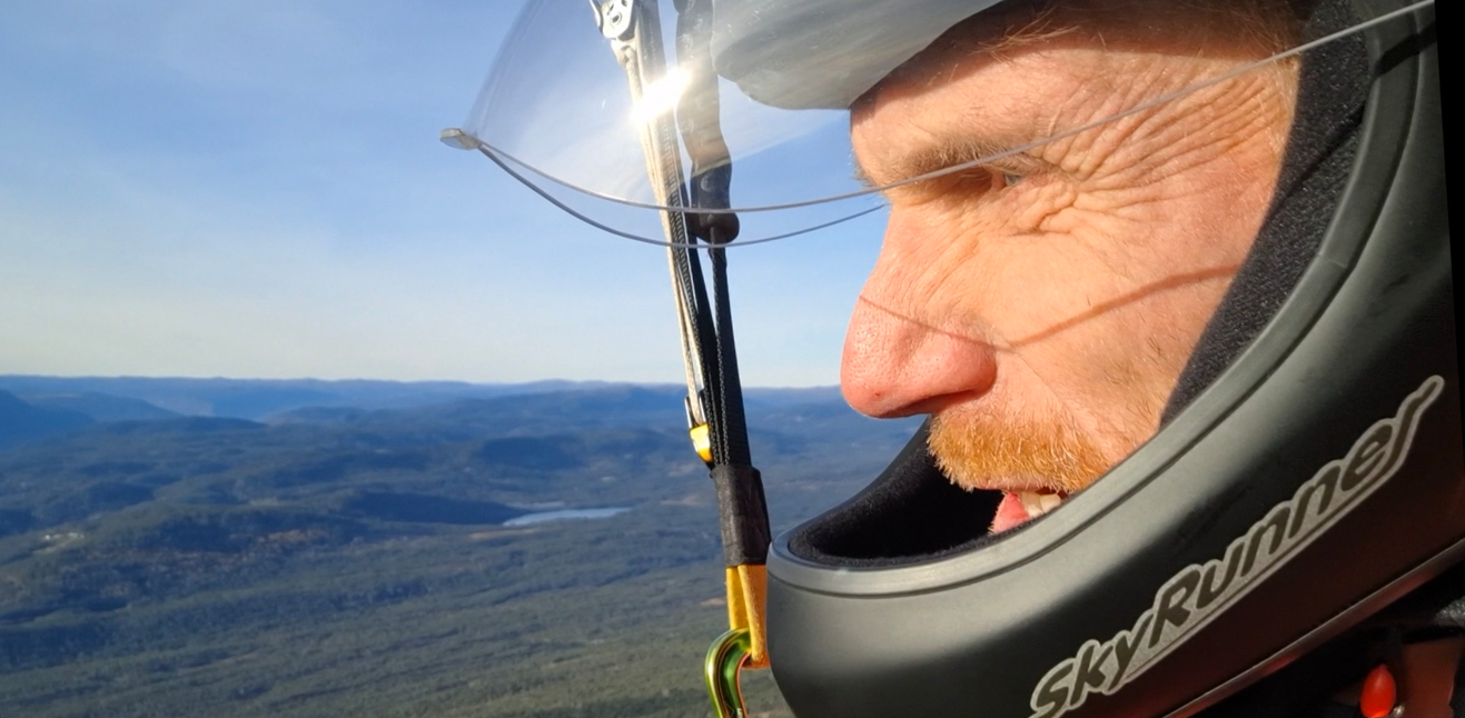 Livet mitt har vært fylt av mye rart. Derfor er jeg glad for at paragliding kommer nå. Om jeg hadde startet med dette for 20 år siden, hadde nok vingen fortrengt mange andre aktiviteter, som jeg tross alt har satt stor pris på. Det er som å pynte en kransekake. Paragliding er den øverste ringen og det norske flagget på toppen. Slike tanker gjør jeg meg når jeg følger vestveggen av Store Ble. Mine erfarne turvenner hadde nok drømt om mer heng og lengre flytid, men for en som ble PP2 i går, er og blir det en overveldende opplevelse. Høyt over dalen, høyt over alt. Ingen øvelser nå, bare nyte. Jeg får nesten tjue minutter før jeg lander på jordet, Aina er der med smil og gratulasjoner for min første «hike and fly».